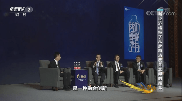 在节目中,卢敏放与来自度小满、猿辅导等企业嘉宾围绕“新经济的变与不变”进行了探讨。节目伊始,卢敏放举起一个带有“可牛了”字样的道具,形象再现了新经济格局下蒙牛如何进行融合创新的案例。