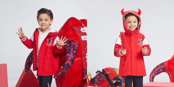 女童款夹克则以喜气洋洋的中国红和甜美可人的紫色搭配印花元素来呈现。丝光绒连帽夹克款式既有新年的中国风质感,又融入了甜美可爱的潮流元素。还可以搭配同系列卫衣,打造出色的中国年造型!