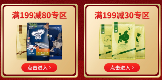 1、满减。在耐威克“萌宠囤年货”活动期间购买宠粮,部分产品可享满199-30、满199-80的大额优惠福利;