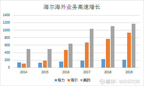 除此之外,海尔智家的营收复合增速2014-2019 的5年中为17.7%,显著高于美的的14.4%,格力的7.4%。