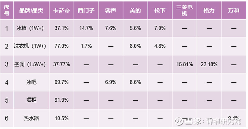 图8:卡萨帝高端品类全面领先 来源 网络截图