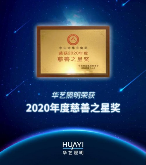 2020年12月31晚,华艺照明亮相古镇镇(2021)慈善晚会,荣膺“2020慈善之星”。