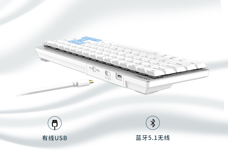 提要:达尔优EK868双模无线机械键盘采用有线加无线的双连接模式。采用蓝牙5.1无线方案,支持同时连接三台设备,通过键盘上方的物理推拨按键即可在三台设备间随心切换;内置2000mAh锂电池,有线连接自动充电,且支持边充电边使用。