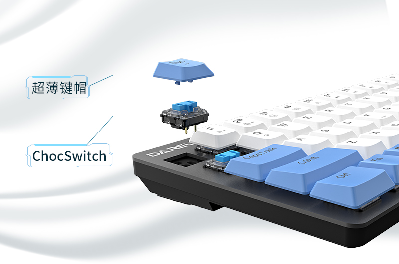 简约的68key键位配列,搭载更为轻薄的凯华超薄轴与超薄人体工学键帽,键盘最薄处低至15mm;采用有线加蓝牙5.1无线的双模连接方案,蓝牙模式下支持多设备同连,一键跨平台操作。达尔优EK868双模无线机械键盘,具有两种时尚配色方案:云海白与夜幕蓝,供你选择,设计更轻薄,连接更无“限”。