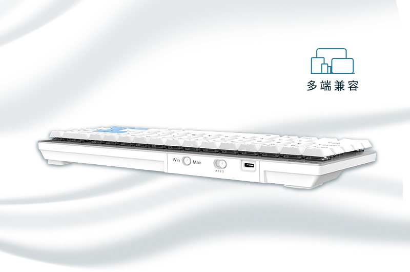 达尔优EK868双模无线机械键盘同时兼容Windows、Mac、Android、IOS等多种操作系统,一个键盘可以将你的笔记本、平板电脑以及手机全部连接;键盘上方设置有Windows和Mac系统切换按键,轻松适配你的系统操作习惯,操作更便捷。