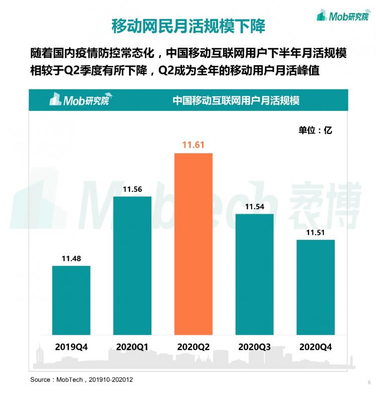 回顾2020年下半年,我们发现移动互联网主要呈现以下特点: