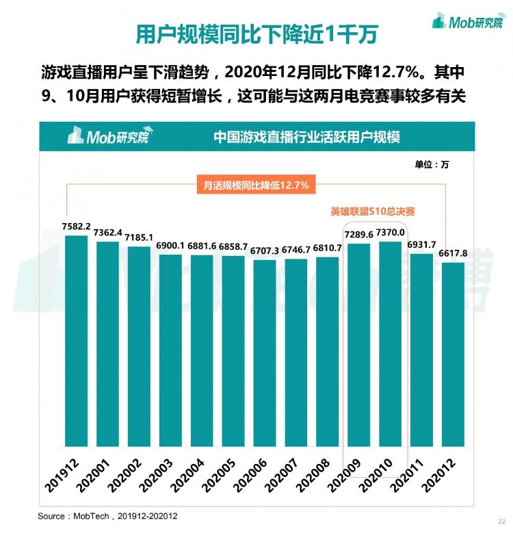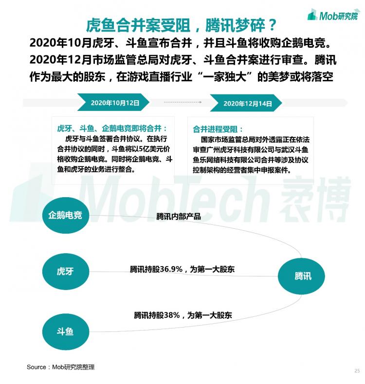 游戏直播:2020下半年直播行业用户规模进入“回调期”,与去年相比下降近1千万。游戏直播行业“虎牙+斗鱼”双雄争霸态势愈加明显,行业集中度进一步提升。同时,头部三家平台正在积极筹备合并事宜,但合并案受阻,腾讯在游戏直播领域一家独大的美梦或将落空。