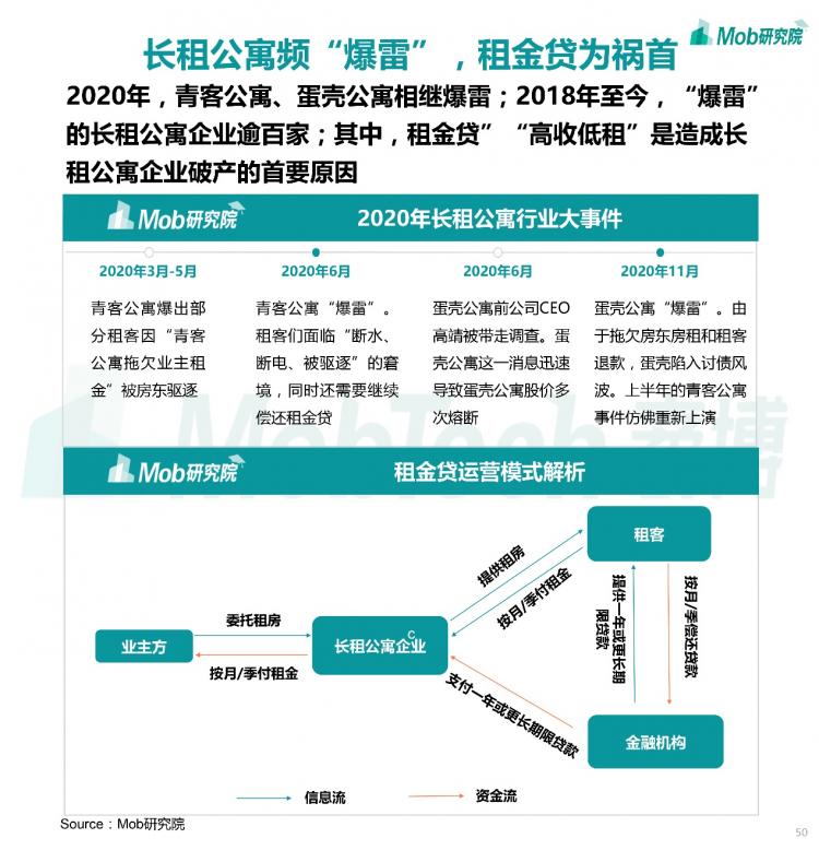 互联网租房:2020年,长租公寓平台频繁爆雷,其中,“租金贷”“高收低租”是造成长租公寓企业破产的首要原因;国家对于互联网租房的政策逐渐收严,野蛮生长的租金贷模式将被严格监管。