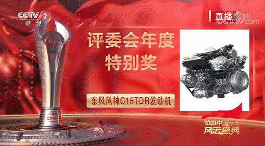 《2020中国汽车风云盛典》联合了国内各大汽车企业与汽车行业机构,通过视频征集、产品测评、大众评选、评审团投票等多个环节的大浪淘沙,最后通过央视这一面向全国汽车消费者的顶级舞台,为消费者评选出极具参考价值的购车选择,并积极宣传报道中国汽车工业向上发展成果。凭借C15TDR发动机脱颖而出的东风风神展现出了汽车关键核心技术领域强大研发实力与成果,为中国汽车,中国制造传递出更响亮的声音。