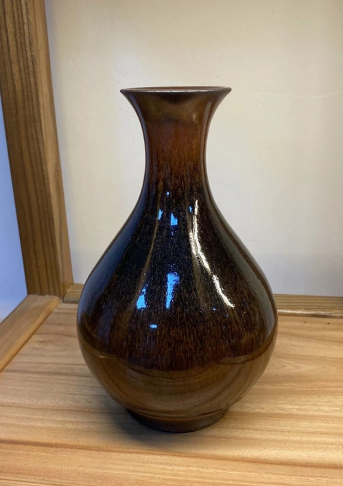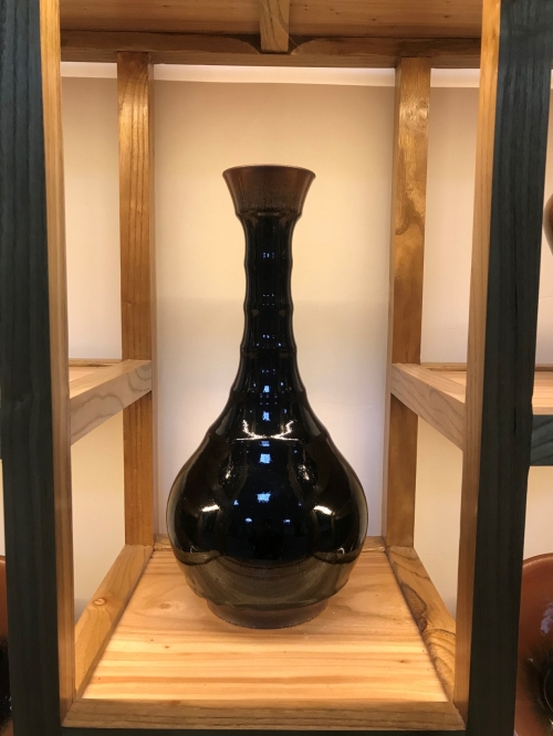 离开前,我们有幸欣赏到刘龙老师近期的作品“北宋官式直口琴弦瓶”,这是一款结合北宋瓷器特点,效法古瓷器韵致的建盏大件作品,所用胎土纯正,形制精臻,是将宋代美学带入现代生活的诚意佳作。