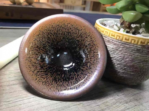 “我一直认为传统不能丢,遵循古法是烧盏的基础,而大胆创新是烧盏的灵魂。”刘龙老师对笔者如是说。在从事建盏烧制创作的8年中,他一直致力于传统烧盏技艺的研究,立足于“宋盏”灵韵,研烧过程中融合各大窑口的特点,力求烧出更适合当今审美趣味的特色器型,技法纯熟精湛,器型典雅大气,釉色富于变化,具备鲜明的个性和浓郁的传统风格,其作品深具特色,在行业内独树一帜,是不可多得的收藏珍品。