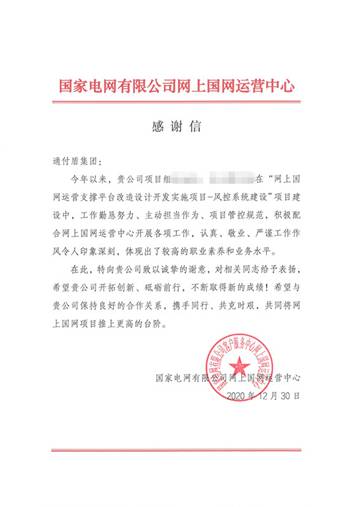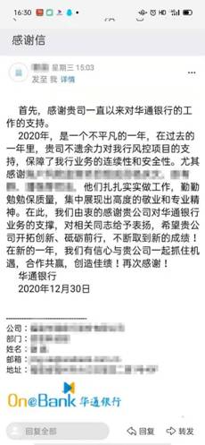 在来自金融银行行业的客户致谢信中写道: