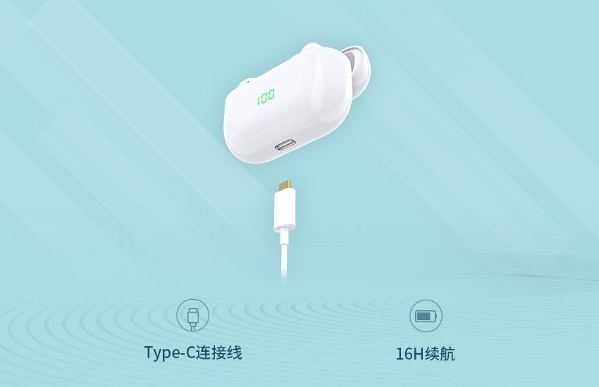 单耳机续航长达约4小时,搭配400mAh电池容量的便携式收纳充电仓,耳机+充电仓整体续航高达约16小时,满足你全天候的使用需求;便携式收纳充电仓Type-C接口充电,设有屏显功能电量提示,实时快速了解充电仓电量状态。
