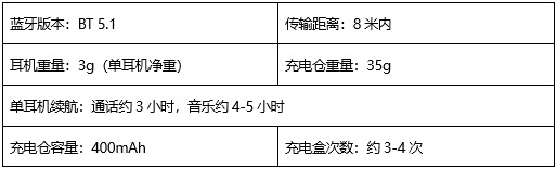 单耳机续航:通话约3小时,音乐约4-5小时
