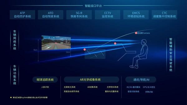 锐思华创相关负责人介绍,中国正引领全球步入高铁时代,传统机车上的DMI多屏显示、调度中心电话通知险情、司机每隔30秒踩踏板的确认方式等已很难应对日益复杂的列车作业环境,因此,将驾驶室的风挡玻璃作为人机交互的载体,采用5G融合通信+AR技术就成为下一代智能辅助驾驶系统的优先选择。国际上,很多巨头们也在参与下一代智能辅助驾驶技术的联合研究,如庞巴迪联合圣戈班,川崎重工联合索尼等。但高铁上的5G融合通信+AR呈现并不容易,需要在光源模组、光学设计、生物特征识别、人机交互、AI算法、通信融合等方面上攻克高铁多场景下的各种技术难关,例如解决高铁双曲面风挡玻璃上的清晰成像,超远距图像精确识别、列车/调度中心/司机险情判决与分级处理、天地一体化融合通信等。