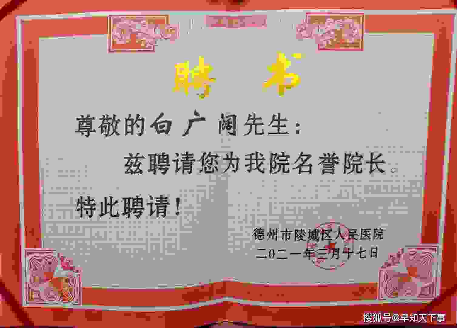 白广阔(右)被聘为陵城区人民医院荣誉院长