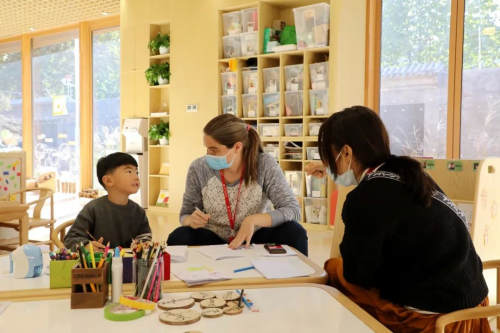 在每天的幼儿园学习中,中外籍教师会观察并记录每个孩子在语言、认知、社会情感等六大学习领域中的变化,根据不同的认知阶段和兴趣特点,为每个孩子制定完善且独特的学习计划,为他们找到专属的成长之路。个性化早期关注还体现在学习组设置上,在小朋友入园之初会按照年龄和认知程度等进入不同的混龄学习组,通过混龄组学习满足不同年龄孩子的成长需求,创建更多学习、模仿、示范的机会,促进社交互动和认知发展,获得多元成长体验。
