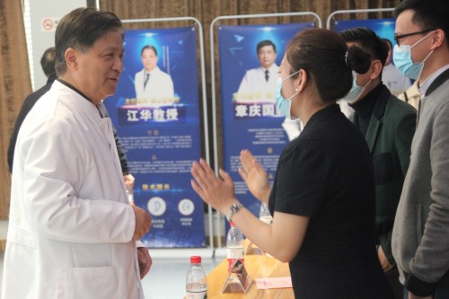 (中国医师协会整形外科与美容分会会长、上海市东方医院整形外科主任江华教授和新氧科技副总裁刘蓉了解公益救助情况)