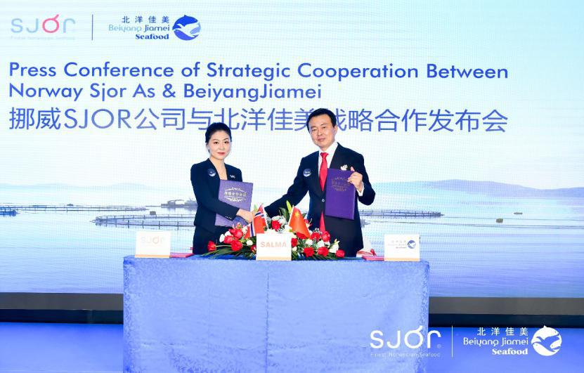 2021年6月10日,挪威SJOR公司与北洋佳美战略合作发布会在京举行。会上,挪威SJOR公司与北洋佳美签订战略合作协议共同发掘、培育挪威三文鱼及制品的零售市场。双方将围绕提升优质海产品在中国加工业的生产能力,实现挪威三文鱼从上游资源到零售终端的完整闭环系统,为各零售渠道提供完善的供应链解决方案,发挥各自优势,联合实现共赢,以三文鱼开启海洋蛋白在中国市场的鲜食之旅,让更多健康、美味、营养的鲜食海产品,进入到中国消费者的一日三餐。