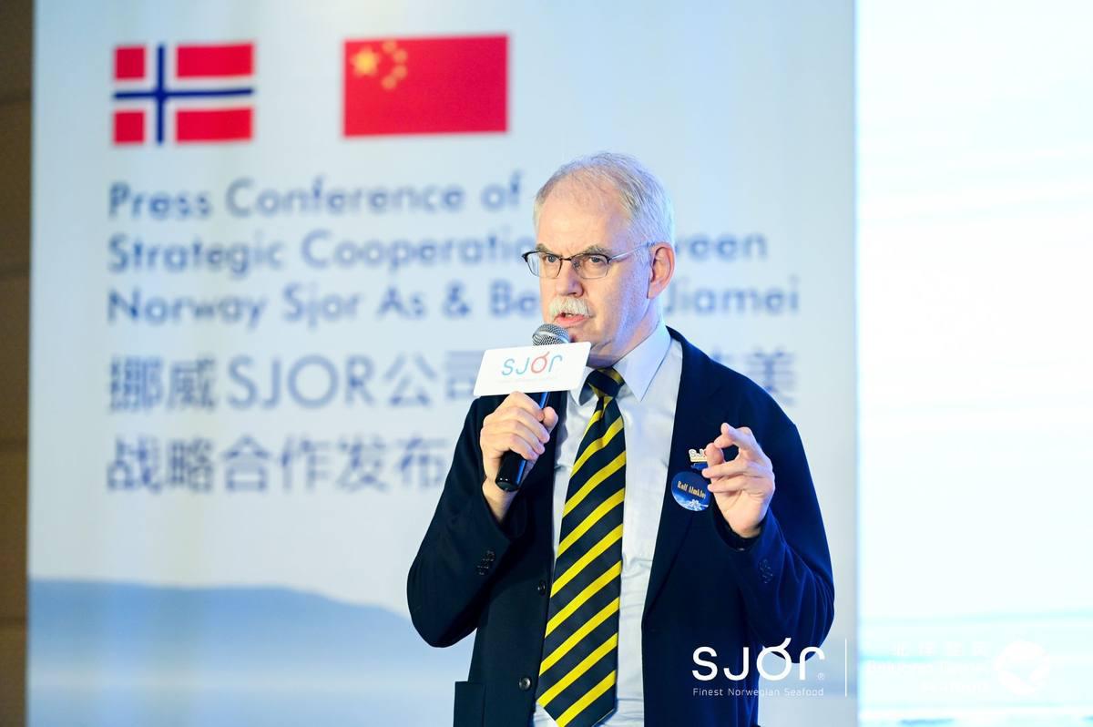 挪威SJOR公司中国首代罗兰女士在致辞中介绍,SJOR在古挪威语中是海洋的意思,挪威海洋为挪威人民提供了重要的营养和美食来源,因此SJOR的寓意是继承这美妙的天然遗产,并且将它传递到全世界。挪威SJOR公司(SJOR AS) 致力于成为客户对于高品质海鲜的自然首选,通过密切联合商业合作伙伴创造和提升产品价值,从而更好都服务终端客户,实现品牌的真正价值。