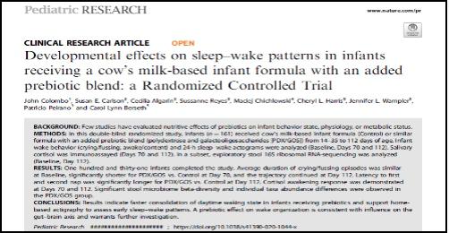 据悉,本次最新获得的美赞臣婴儿睡眠研究启动于2014年,是全球首个探究PDX+GOS益生元组合配方奶粉与宝宝睡眠模式养成关系的双盲随机对照试验。这项研究结果发现,喂养添加PDX+GOS长短链益生元组合的婴儿配方奶粉与普通配方喂养相比,有助于加快婴儿睡眠模式成熟,减少婴儿哭闹。这项研究成果在经研究同行的层层学术审评后,于全球知名科学期刊出版集团自然旗下的《儿科研究》上正式发表,成果获得科学界认可。