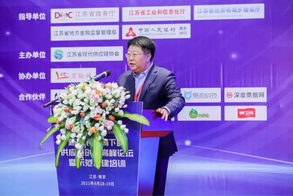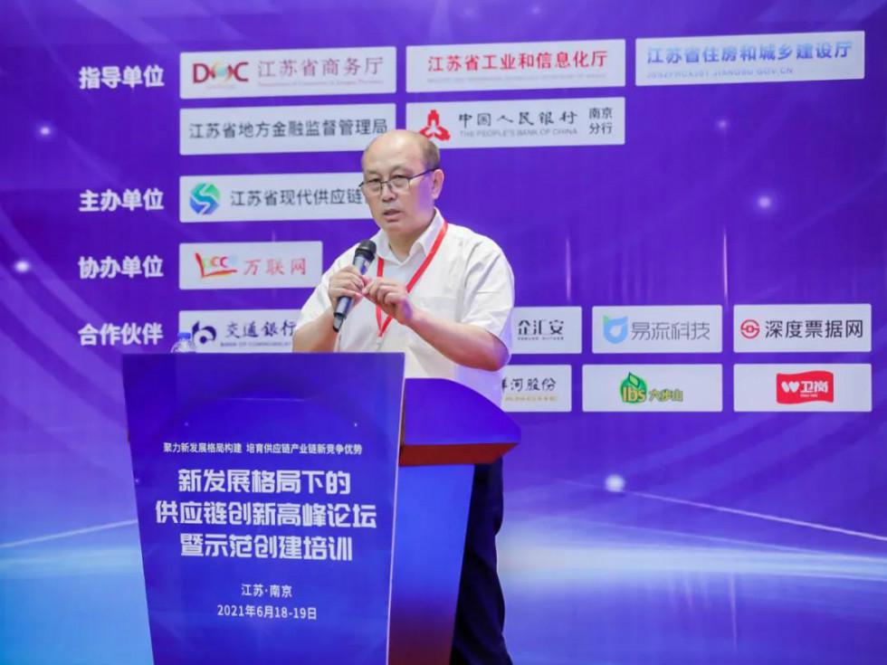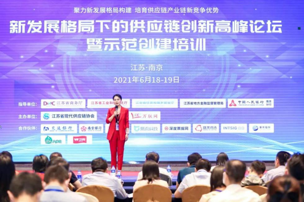 2021年6月19日,由江苏省商务厅、江苏省工业和信息化厅、江苏省住房和城乡建设厅、江苏省地方金融监督管理局、中国人民银行南京分行指导,江苏省现代供应链协会主办,万联网协办,中国交通银行、南京银行、企汇安、易流科技、深度票据网、盛业资本、合合信息、洋河股份、六步山蓝莓、卫岗乳业作为合作伙伴的“新发展格局下的供应链创新高峰论坛暨示范创建培训”在南京成功召开。本次论坛作为全国第一批全国供应链创新与应用示范城市和示范企业公示后、首场聚焦供应链创新的高峰论坛,备受市场关注。