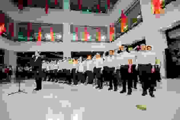 (来自蒙牛各基层党组织的数百名党员、员工代表参加活动,唱出心声)