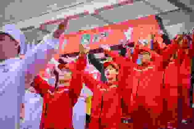 《我爱你中国》小提琴悠扬的声声音律拉开了一场沉浸式演出的序幕,没有舞台的行进式表演,创新地将所有演员和观众融为一体。党的生日,人民的节日,蒙牛人以这样一种特殊的方式,为建党百年盛典献礼。