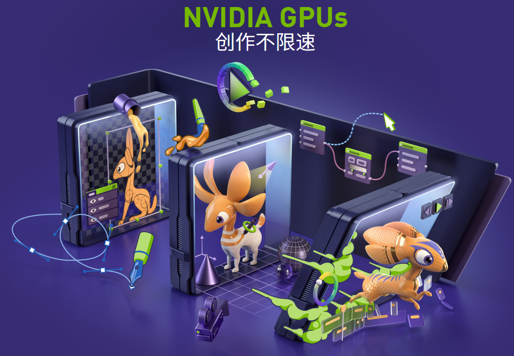 借助 GeForce RTX™ 30 系列GPU,可将您的创意项目提升至全新水平。能在热门创意应用中实现AI加速,由包含专用驱动和工具的NVIDIA Studio 平台提供支持,同时以再度缩短运行时间为目标。无论是渲染复杂的3D场景、编辑8K视频,还是以高编码质量和画质进行直播,GeForce RTX™ GPU均能通过强大性能满足您的需求。