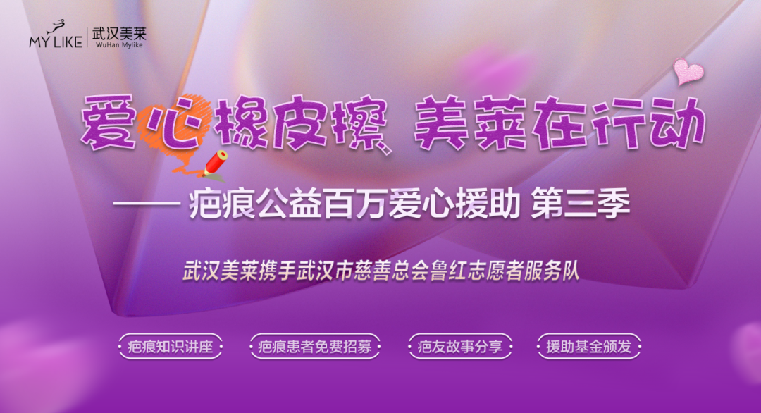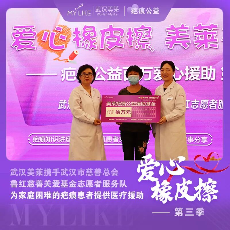 武汉美莱“爱心橡皮擦·美莱在行动”第三季援助计划9月12日正式启动,携手武汉市慈善总会鲁红志愿者服务队发起2021大型疤痕公益援助行动,旨在联合媒体力量,救助因疤痕引起容貌及功能缺陷的患者,为他们重拾生活信心。