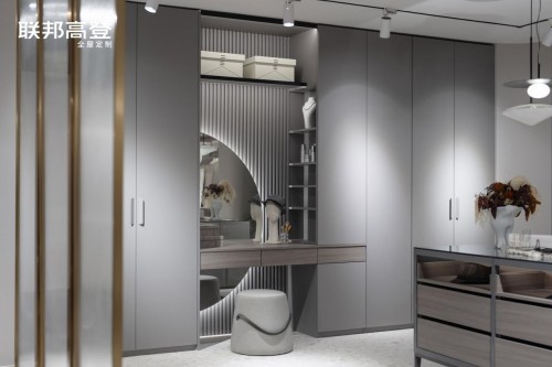 梳妆台与衣柜一体化设计,封闭式藏衣柜收起零碎杂乱,充分满足日常储物所需;悉心妆点精致生活,体验游刃有余。