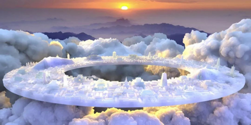 天空寺将99座经典的中国古建筑链接在一个巨大的“0”型建筑体上,构成一座悬浮在无垠星海中的纯白之城,被誉为“送给宇宙的一个指环”。