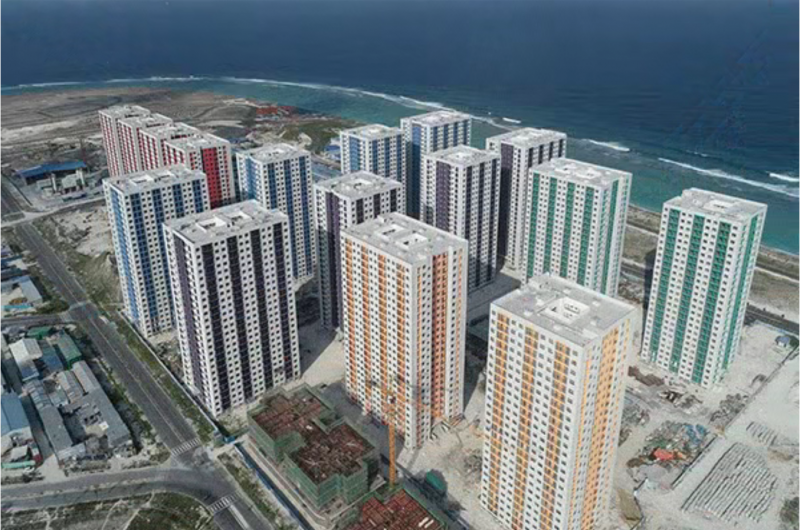 在马尔代夫,总建筑面积约36万平方米的社会住房项目,是该国迄今最大的房建项目,获评中国建设工程鲁班奖(境外工程)。企业为项目供应了7000吨优质钢材。