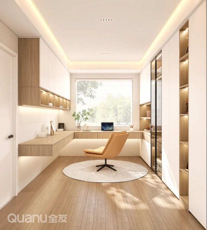 想要实现空间功能最大化,不妨尝试“一室多用”,将书房与美妆间巧妙融合。