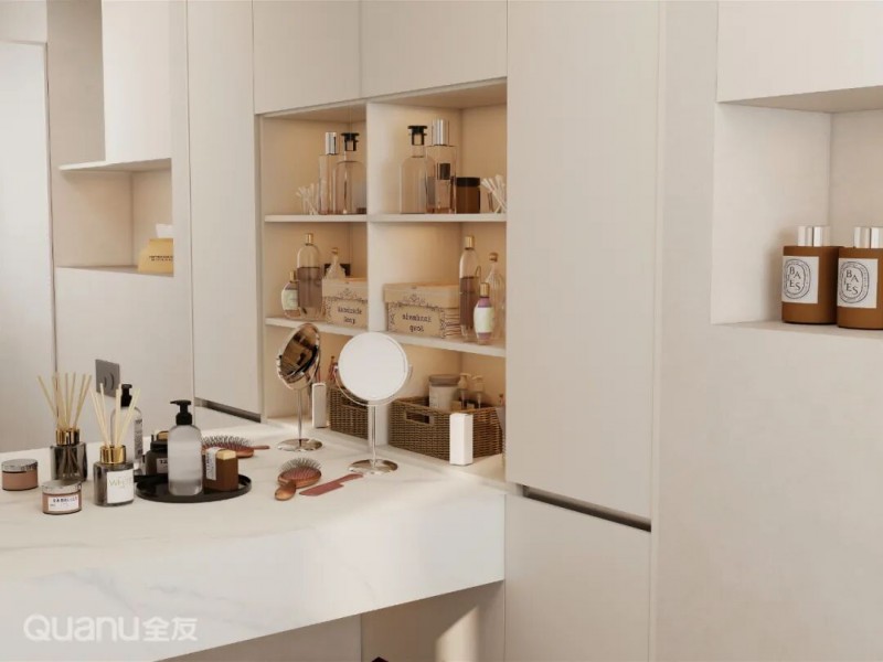 早起洗漱、打扮无需来回走动,晚上卸妆、收纳也能一气呵成,既节省空间,又让精致流程高效串联,小户型也能拥有利落又贴心的梳妆体验。