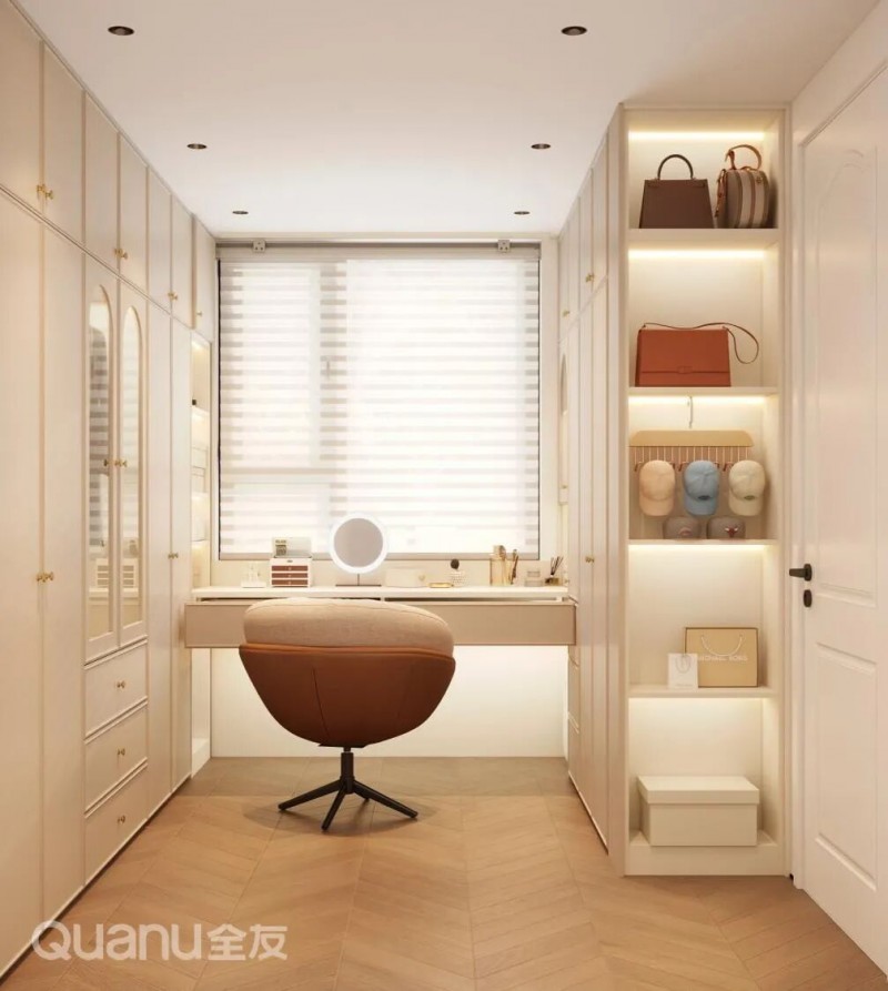 若是多口之家或是时尚达人,衣服配饰众多、化妆品品类繁杂,建议直接打造一个独立美妆间。