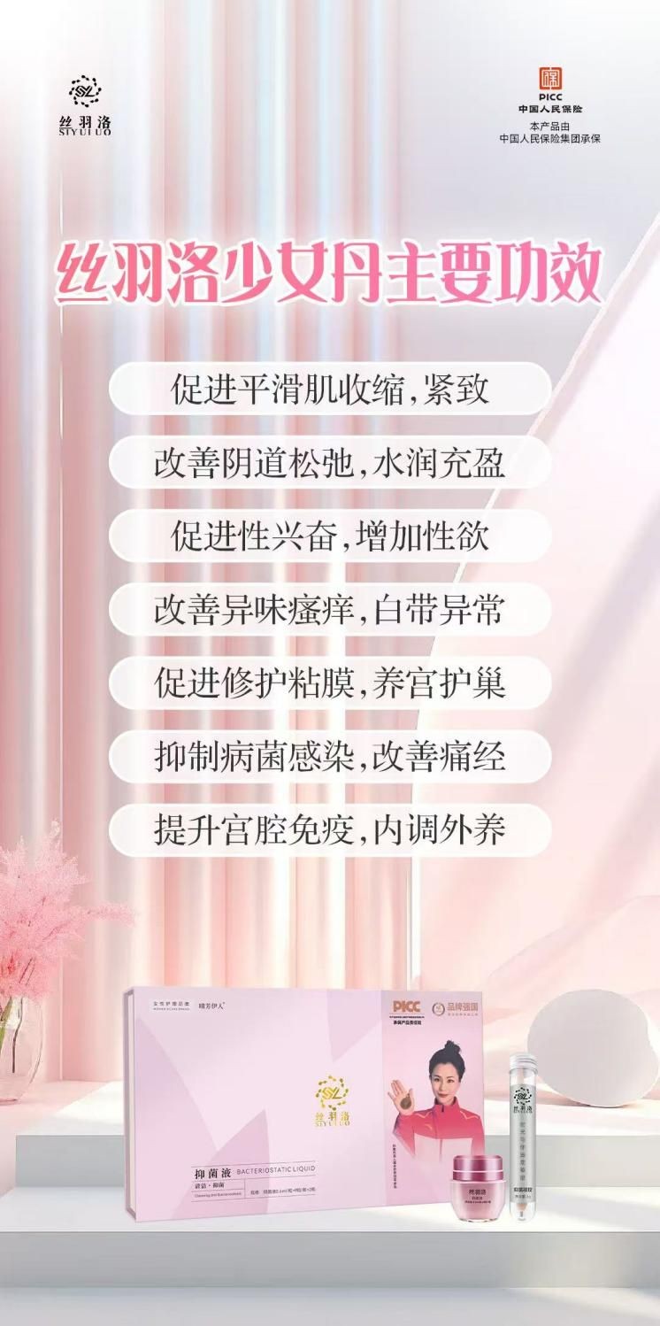 作为品牌强国优选工程〈私护〉行业优选成员单位的核心产品,丝羽洛少女丹不仅有蹦床世界冠军罗丹代言的品质背书,更有中国人民保险集团承保的安心保障。但真正打动消费者的,仍是其深入女性需求的产品优势 —— 天然成分带来的温和养护、精准功效解决的实际痛点、创新技术提供的便捷体验,让丝羽洛少女丹成为 25-40 岁女性私密健康养护的优选,也为私护行业树立了 “以产品力赢信任” 的标杆。未来,丝羽洛将继续以产品创新为核心,为更多女性带来高品质的私护体验,守护每一份私密健康与自信之美。