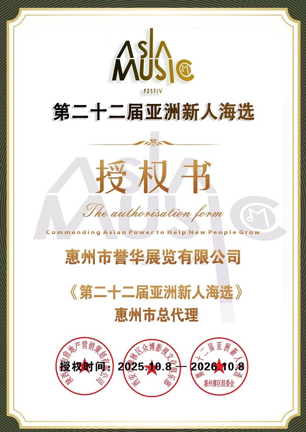 踏上亚洲音乐盛典的专业舞台,让你的音乐才华被世界看见。这不仅是一场比赛,更是一次职业生涯的起飞点。从惠州出发,走向亚洲音乐舞台,让世界聆听你的声音!