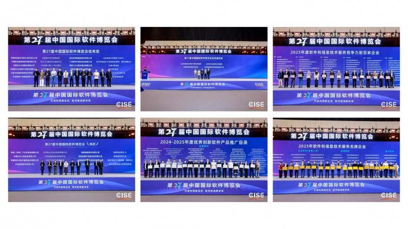 在首届中国国际软件博览会专家委员会成立的同时,大会还发布了多项权威名单与目录,包括2025年度软件和信息技术服务竞争力百强企业、2025年软件和信息技术服务名牌企业、2024~2025年度优秀创新软件产品推广目录,以及参展产品各类奖项。在参展产品评选中,共评选出组织奖 4 项、优秀奖 12 项、银奖 8 项,而最受瞩目的金奖仅设 2 席,竞争异常激烈。