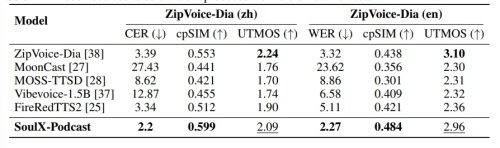 SoulX-Podcast在通用TTS上的表现,*官方模型的复现结果