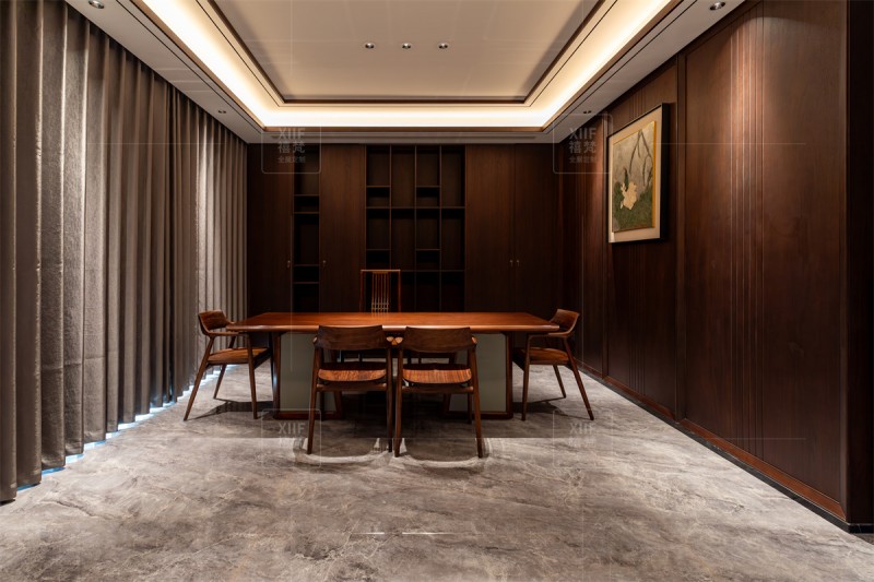 最终,所有的设计语言,都回归到一个核心——为居者围合出一处悠然自得的天地。温润的木色,构筑了空间温暖而包容的底色;材质的触感,从画面蔓延至三维空间,细腻而真实。XIIF禧梵高端定制,以温和且理性的姿态,赋予居者归家的仪式感。我们不言“传统”,却以无声的力量,唤醒您对自然、时间与内在精神的深层感知。在这里,材质的通透与厚重、光影的流动与叙事,共同编织出一种既深邃悠远,又极具当代质感的静谧场域。