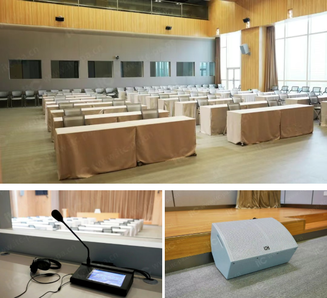 报告厅作为大型会议活动的重要场所, itc根据广东某气象中心实际情况,为其搭建了集专业扩声、数字会议、高清录播、同声传译及舞台灯光为一体的综合解决方案。通过各大系统的深度融合,构建起 “看得见、听得清、传得广、译得快” 的全链路会议生态,满足气象中心对国内外会议、活动举办的多样化需求,为气象决策提供强有力的技术支撑。