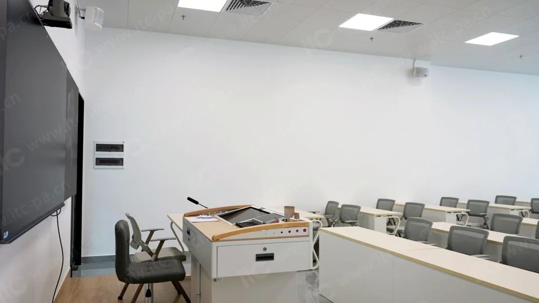 在声学设计上,itc依据各教室的空间结构, 精心布置扩声设备,确保教室内每个角落声音均匀覆盖 ,学员精准获取气象知识要点,为师生打造出一个听觉上无差别的教学环境。录播教室内 4K高清录播系统的部署 ,实现了教学过程全自动跟踪录制, 可快速生成高清课件资源,支持本地存储与云端共享 ,便于学员随时回看复习。同时, 系统支持远程直播功能, 可联动偏远气象站点或国际机构开展跨区域培训,推动气象知识、技术经验的快速共享与迭代,助力气象技术创新升级。