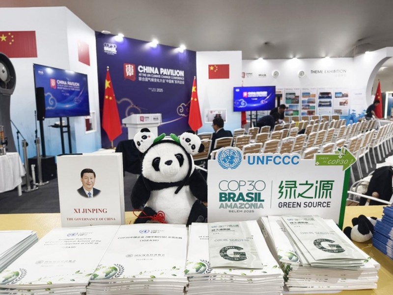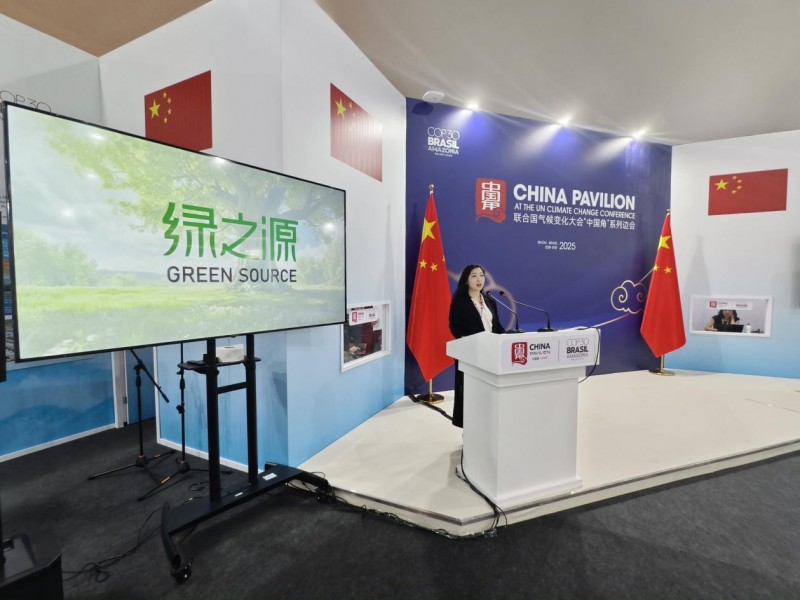 图注:COP30 巴西贝伦会场中国角:绿之源与 UNFCCC 标识同框