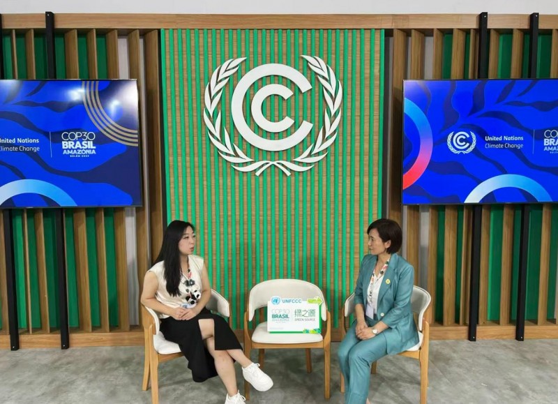 图注:COP30 现场:绿之源接受采访并展示进博会绿色贸易示范案例技术成果