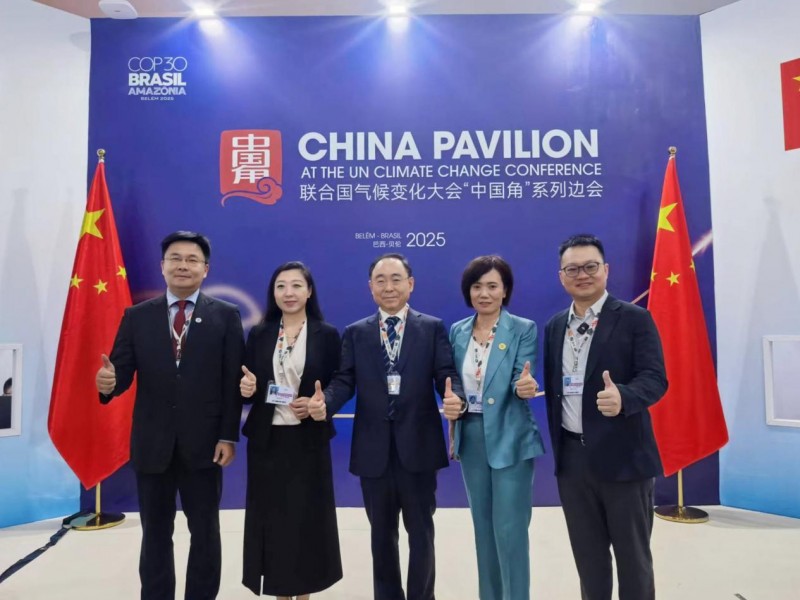 图注:COP30 中国角:绿之源代表手持 UNFCCC 合作标识留影