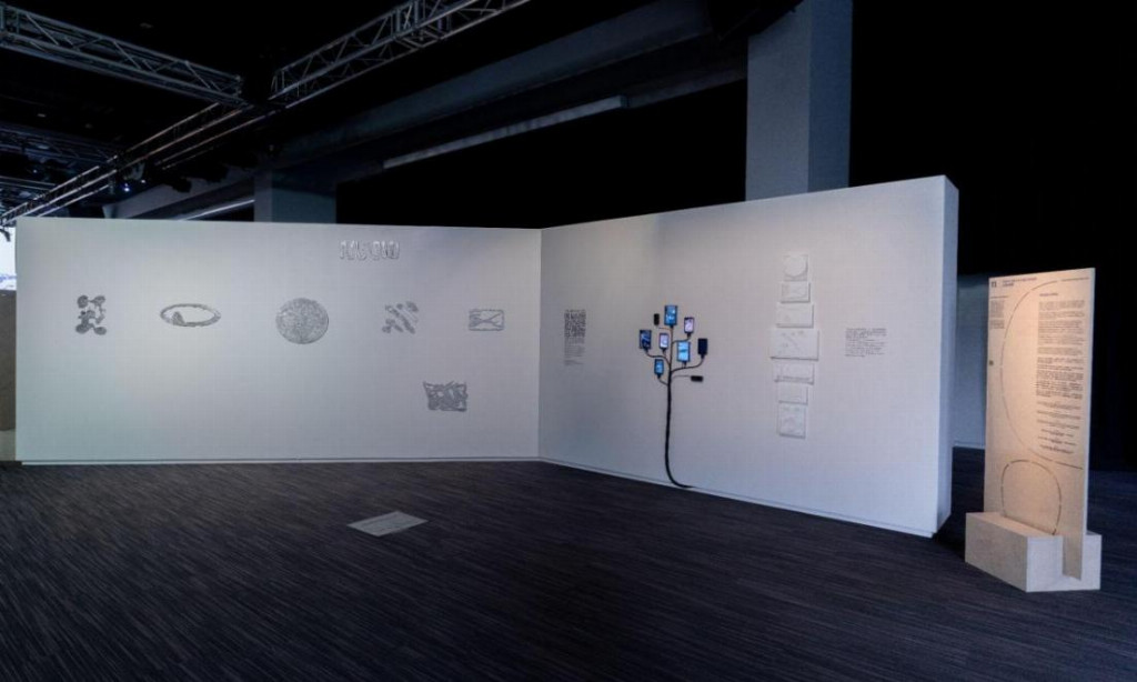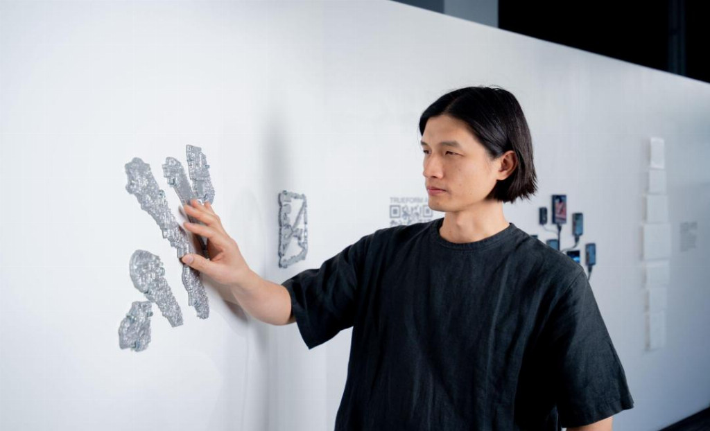 《Trueform》驻伦敦的香港工作室Studio Nopqrst以“平面设计残迹” 为创作起点,将海报撕去后留下的胶痕,通过手工铸造成铝制浮雕,这一系列浮雕同时也是“Trueform AR”的触发点——透过扩增实境技术,观者在实体空间中看到一系列以“Stable Diffusion”生成的数位雕塑,在实境之中虚拟地回转。“Trueform AR”将金属铸造与人工智能生成的成果并置——两者皆带有神秘色彩。作品批判“设计仅为商业服务”的现状,探讨 “当内容消失,设计的本质价值何在”,呼应“想望”中对“设计回归理性沟通”的追求。