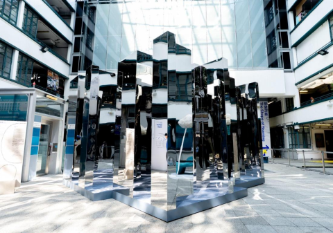 《阡陌》是5×5米的镜面矩阵,空间研习工作室尚境团队构建了微型城市迷宫。镜面反射周边环境与观众身影,观众在“虚实交错”中寻找出口,既体验香港高密度城市的空间压缩,也在“陌生感”中叩问“我是谁、我身处何方”的终极命题。