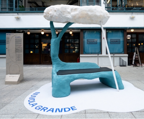 《努沃拉・格兰德(大云朵)》,雕塑设计师Jonathan Bocca以再生纸板为基座、弃置纸巾为顶盖,打造可静坐的“静谧空间”。观众可仰观光影透过“云朵”的流动,作品以“废物重生”诠释“想望”中对“可持续生活”的追求,同时强调“触摸承载记忆”——每一次触碰都能唤起对“柔软、短暂”的珍惜。