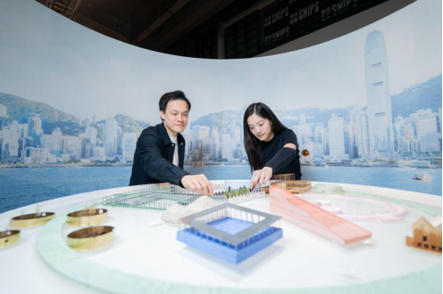 建筑师陈思颕和卓嘉豪的《维多利亚港:想望之岛屿》将按1:200比例12座的陶瓷石膏浮岛模型放置于模拟维港的水面上。浮岛可组合成“沿岸排列”、“跨港桥梁”、“水上广场”等形态,呼应1950年代维港泳棚的集体记忆,让观众从多元视角重拾与海港的情感联结。